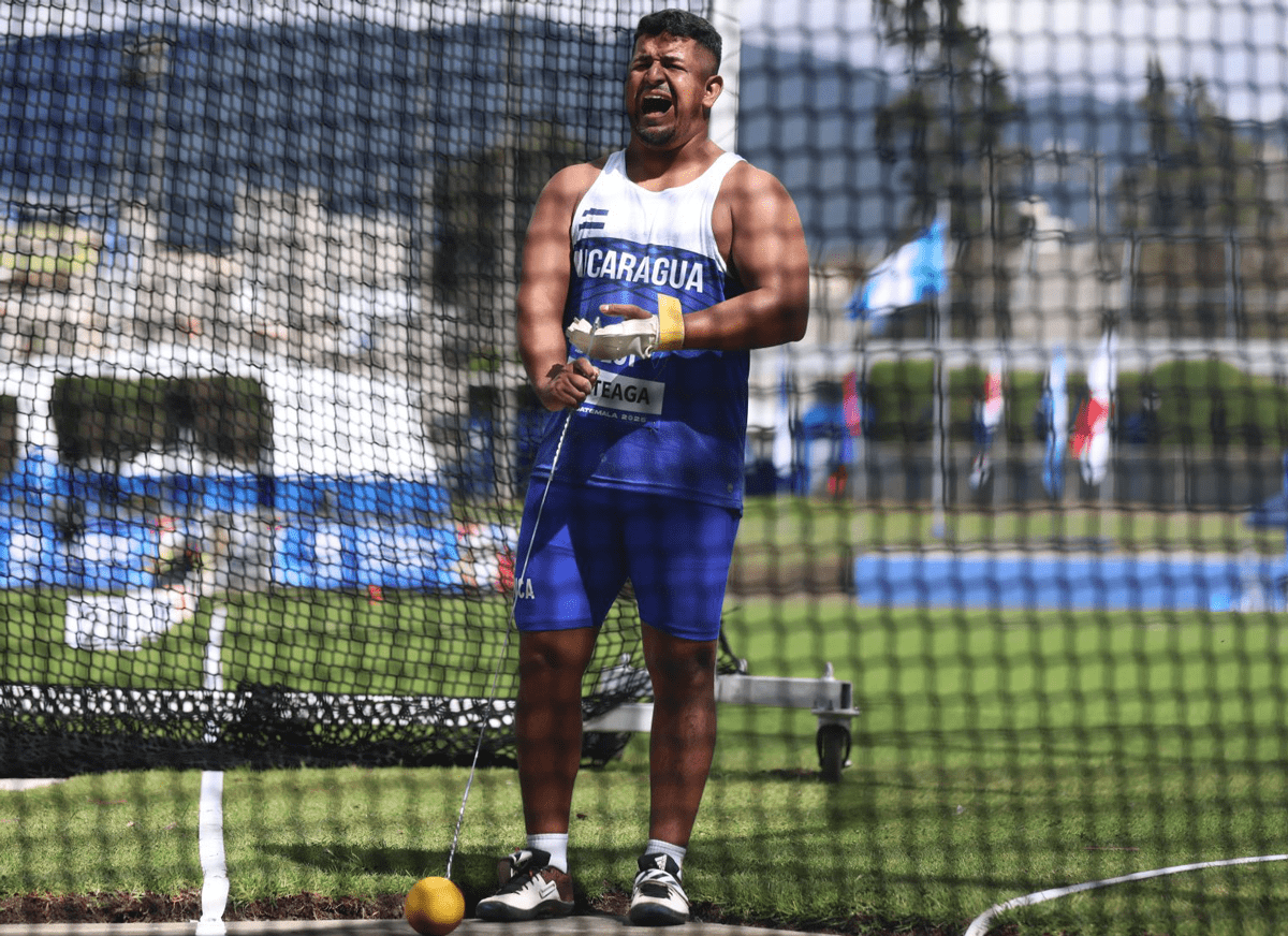 El atleta nicaragüense Carlos Alberto Arteaga da la tercera medalla de oro para Nicaragua en los XII Juegos Centroamericanos, Guatemala 2025., en lanzamiento de martillo (7.26kg) con una distancia de 64.09 metros, y establece nuevo récord nacional.