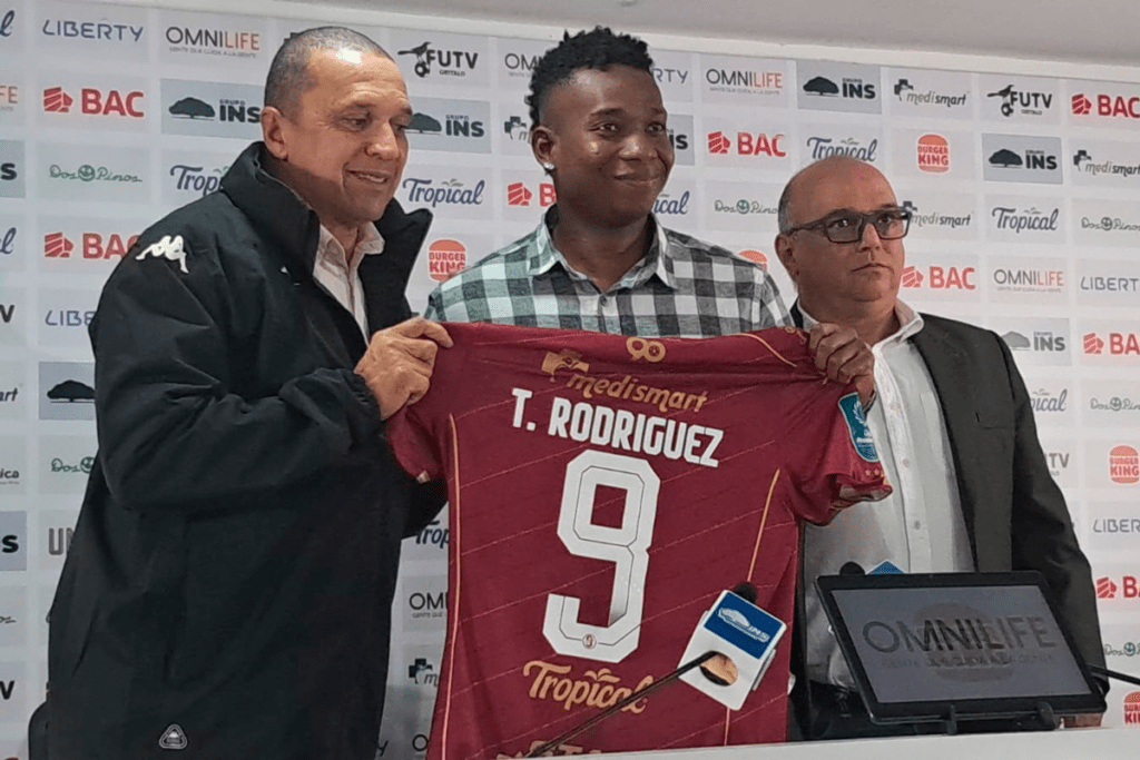 El atacante nicaragüense fue presentado junto al guardameta Minor Álvarez, quien utilizará el dorsal 30, y el delantero panameño Tomás Rodríguez, que portará el número 9.
