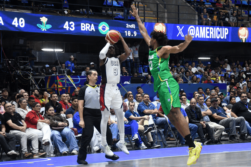 El partido fue de alta intensidad y mantuvo la expectativa hasta el último cuarto. Estados Unidos comenzó mejor, imponiéndose 24-21 en el primer periodo, pero Brasil reaccionó con fuerza antes del descanso y se fue al medio tiempo con ventaja de 46-40.