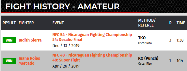 Sus dos peleas amateur en MMA fueron contra Judith Sierra y Juana Rojas, ambas las ganó por nocaut.